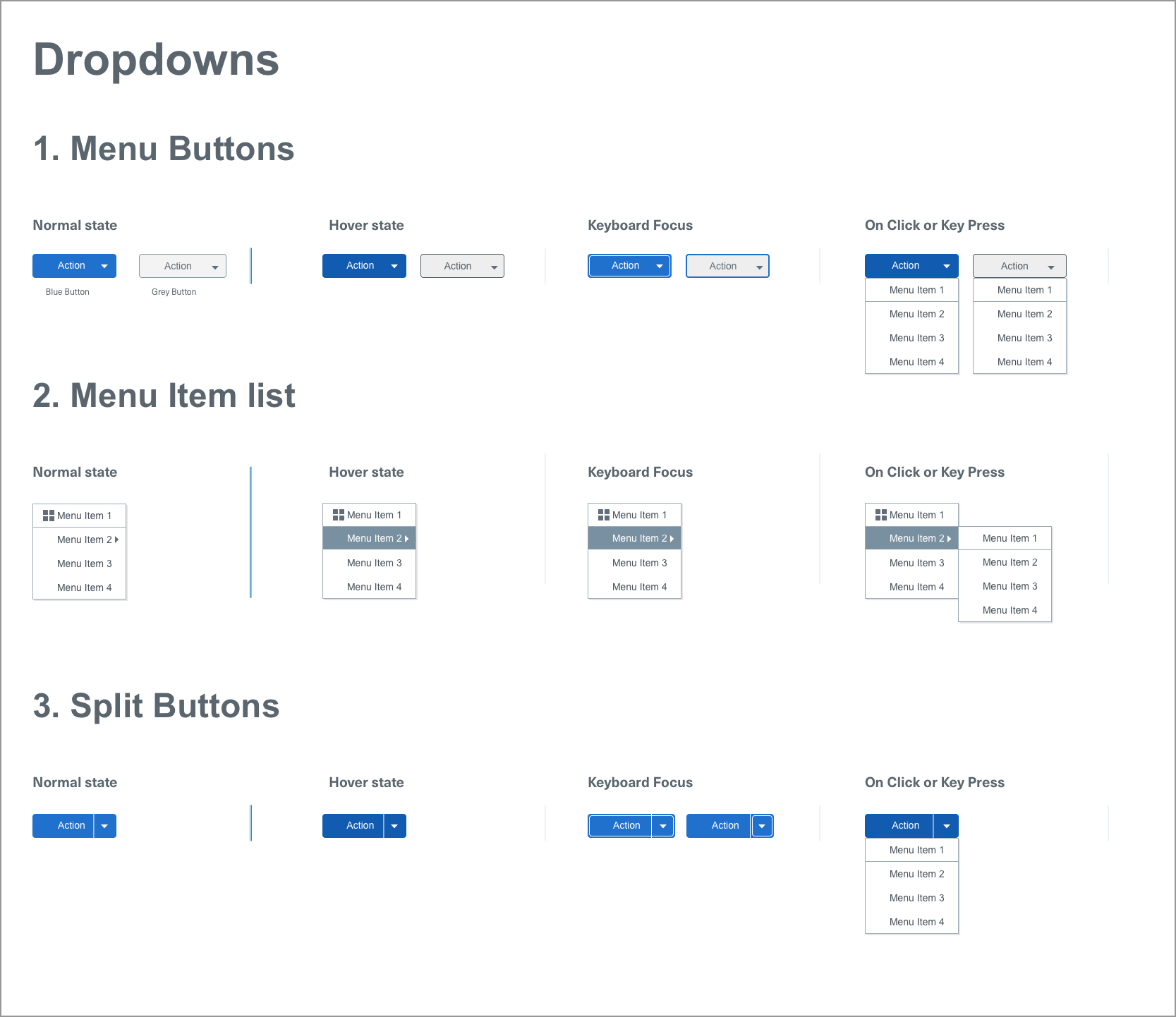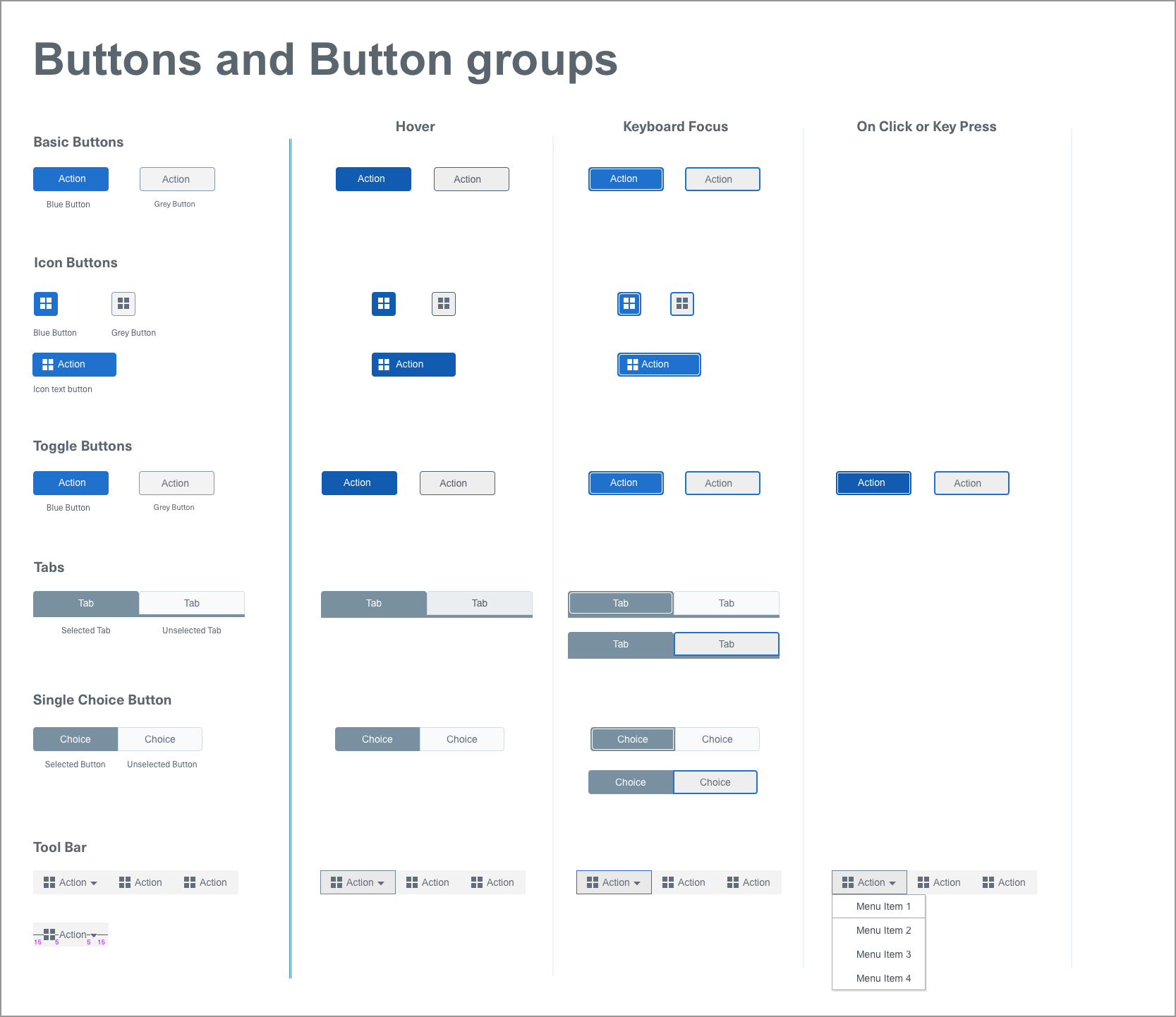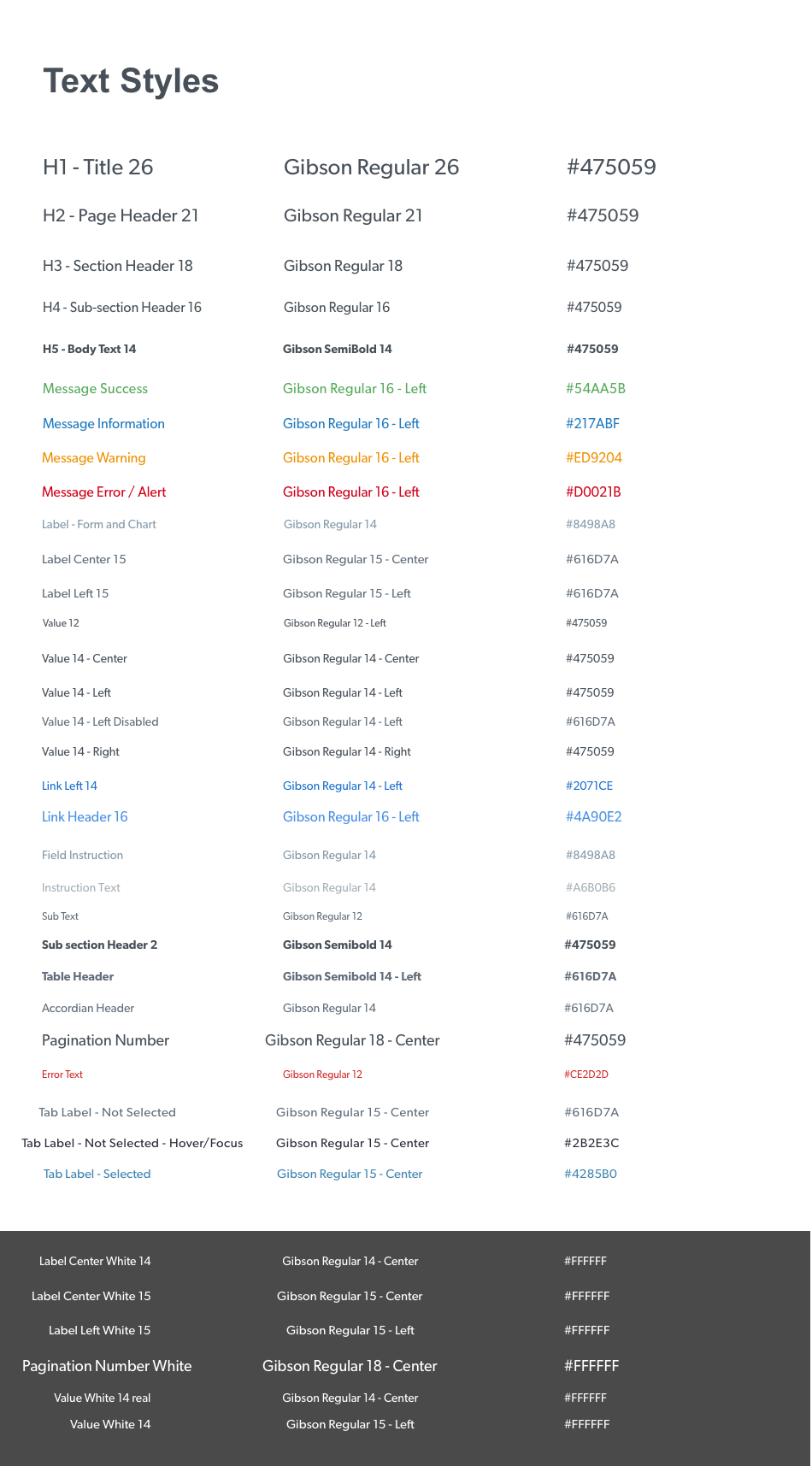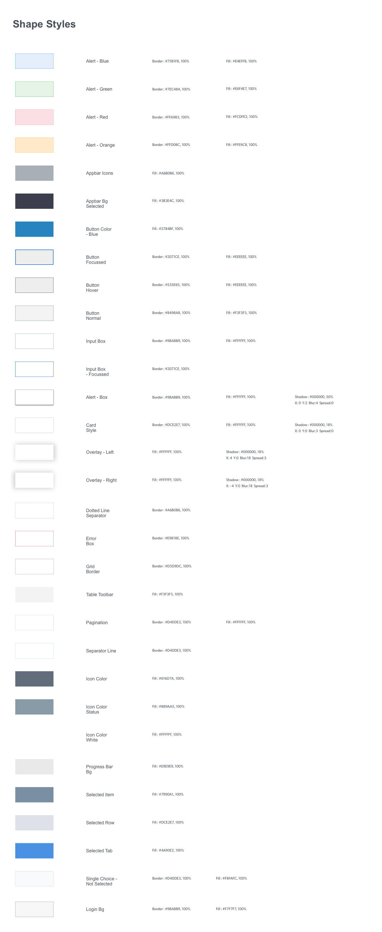 I documented 33 different layer styles that were used for different UI components in the Framework. This included documenting different states of UI component (Normal, Hover, On-click) along with the border, shadow treatment and color fill. The layer style was saved and used directly to create the UI components whenever they were used in the design